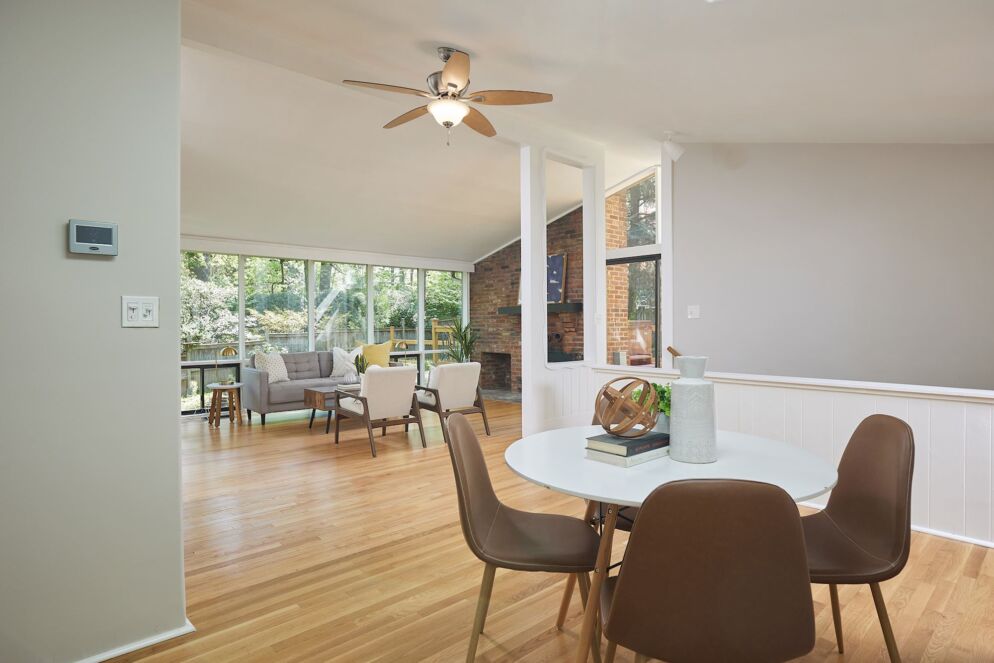 “Goodman homes are sited on different angles on the street,” Schaeffer said, adding, “I later found out that that was because he built these homes so everybody could have a Western view, a sunset view from their main living [room] space. It’s actually better in the winter … in the summer, when the leaves come in, the view is full of trees. My whole living room is golden when the sun sets, which is amazing.”